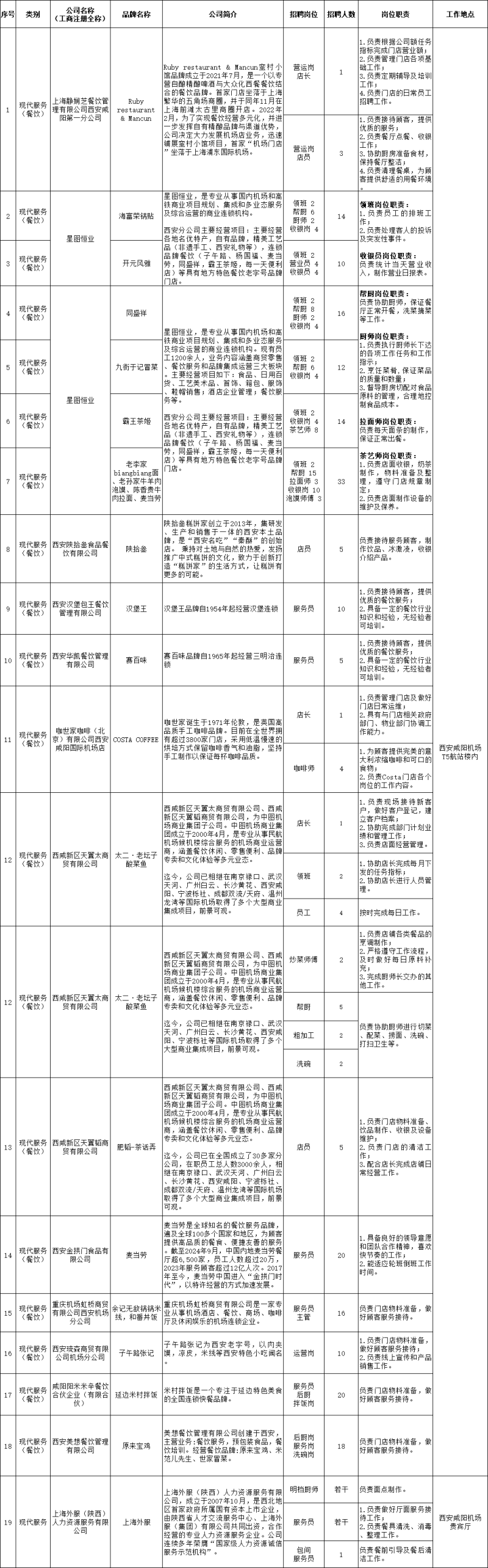 为保障机场三期顺利投运、助力T5航站楼商务区正式启幕,由西咸新区社会事业服务局指导,空港新城将联合咸阳经济技术开发区在西咸新区底张街道举办机场T5航站楼商务区入驻商业(综合商贸类、现代服务类)专场招聘会。届时,LAMY、711便利店、大疆、新秀丽、陕拾叁、同盛祥等知名企业将面向社会提供储备管理岗、营运店长、产品专家、销售顾问等400余个优质岗位,诚邀各界英才,期待您的加入。