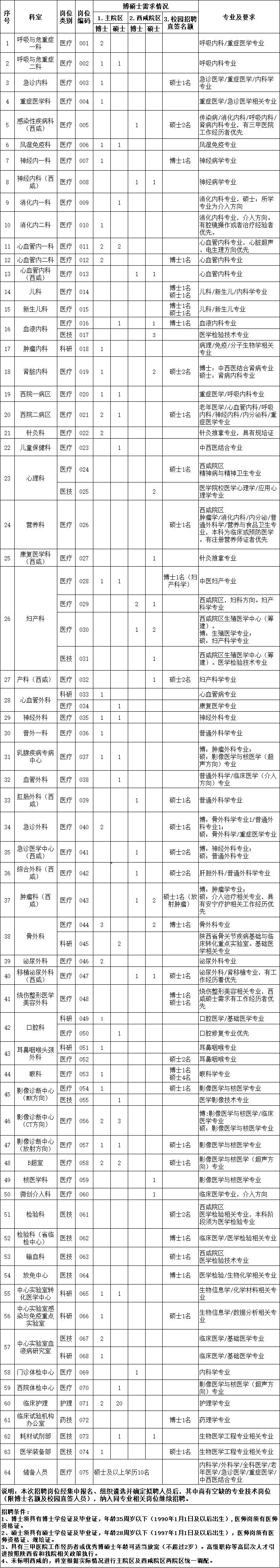 招聘博硕士研究生188名,其中编制内博士研究生72名、编制外合同制硕士研究生116名(含硕士及以上储备人才10名),包括医疗、科研、医技、药剂、护理等岗位。详见文末《陕西省人民医院2025年临床医技科室博硕士招聘计划表》,了解具体招聘条件。