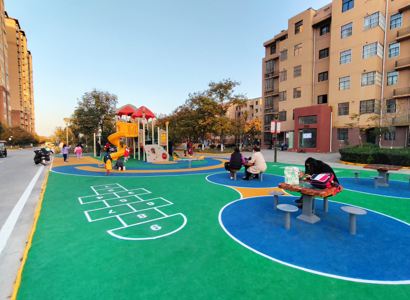 熙春园社区位于西咸新区秦苑一路以西,咸铜铁路以北,秦柳路以东,兰槐路以居住人口密度大,今年针对熙春园社区器材数量少、老久等问题做了改造提升南,新增配置了适合老年、中青年、青少年不同年龄段的健身器材,儿童健身区地面铺设以绿色、黄色为主色调,将西咸新区坚持“生态与文明共筑,绿色与发展共进”的理念融入健身环境,更好的满足了广大群众对力量练习、有氧锻炼、休闲娱乐、亲子社交等多样化需求,打造了一个充满活力、动感,又极具趣味性的社区时尚运动场。