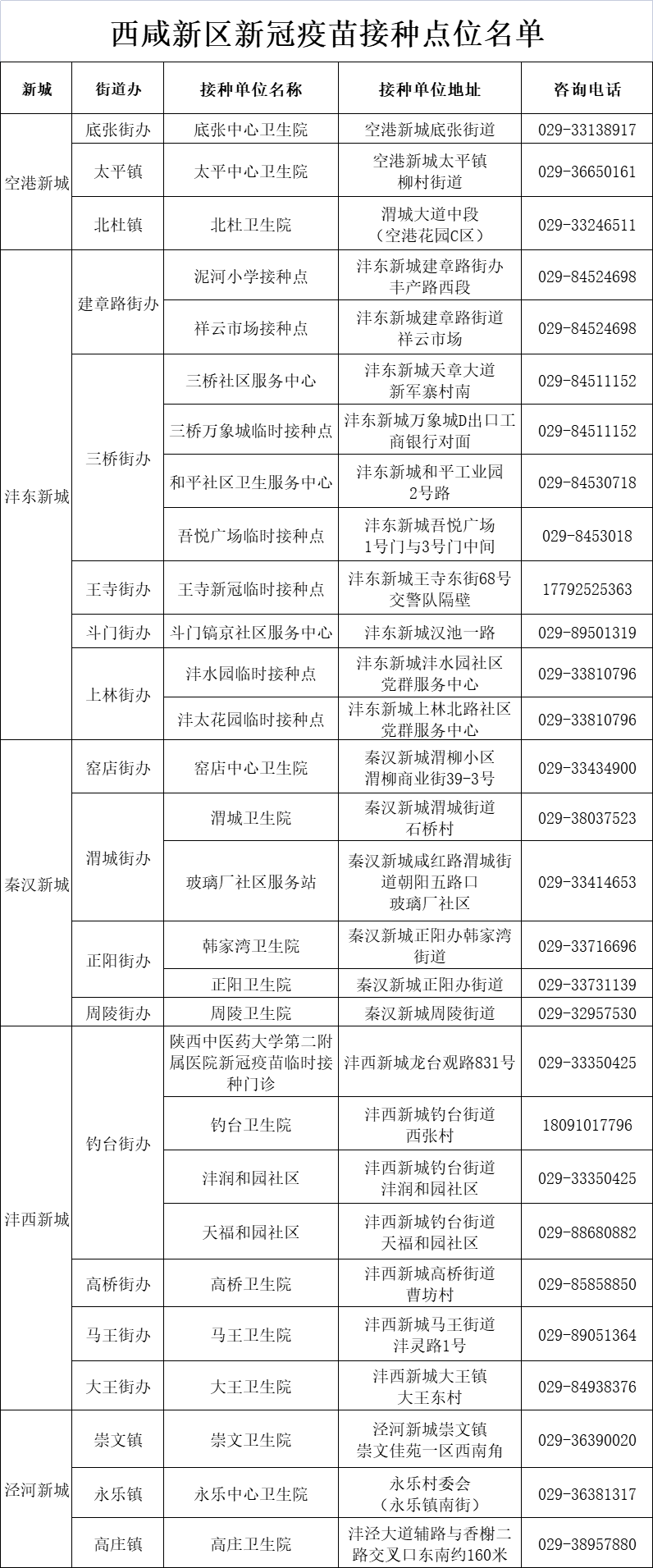 西咸新区疫苗接种点位有哪些