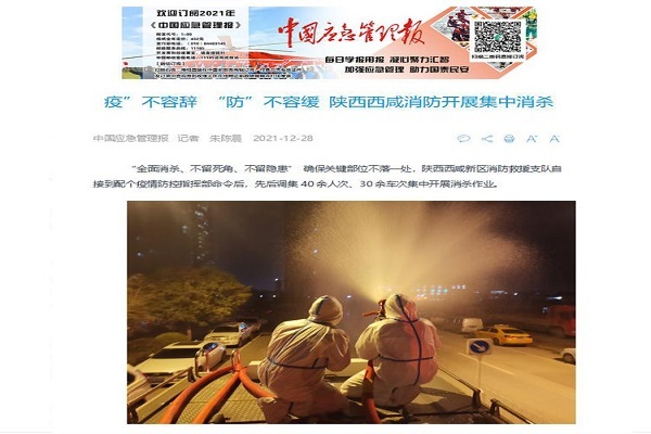 战“疫”一线故事暖人心。西咸消防多个“战“疫”一线故事在人民日报、西部网、陕西都市快报、陕西新闻网、西安发布、网易新闻、搜狐网、三秦网等多家媒体刊发,奋战一线的“火焰蓝”用奔赴一线的实际行动和并肩作战的“爱”谱写着一个个暖心又感动的抗“疫”故事。中国应急管理报专栏报道《“疫”不容辞 “防”不容缓 陕西西咸消防开展集中消杀》,陕西日报、群众新闻4次报道《让鲜红党旗飘扬在战“疫”一线》主题文章,西部法制报、华商报刊发长文《陕西西咸抗疫小分队“发挥职能优势,助力打赢疫情阻击战”》与《“火焰蓝”变“大白”24小时待命驻守,还为群众买菜送药》,西咸消防用一次次义无反顾的逆行出征,全力彰显“火焰蓝”的为民担当。