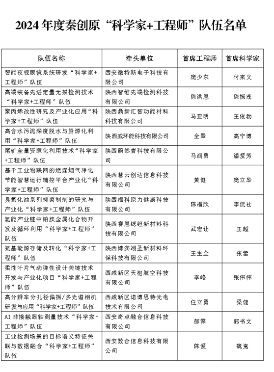 能源金贸区13家企业入选2024年度秦创原"科学家+工程师"队伍