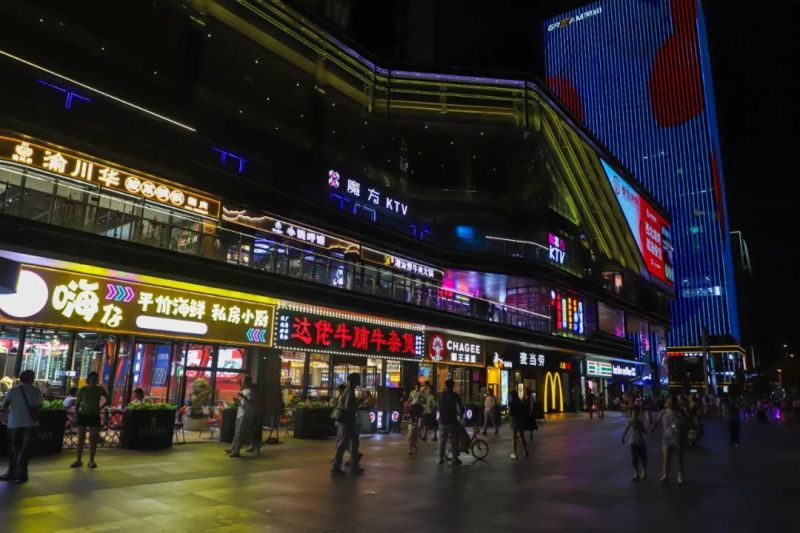 夜幕降临,华灯初上,街边招牌亮起,国润季、上林天地等商圈也愈发热闹,火锅、烧烤、炒菜、奶茶等美食琳琅满目,让人挪不动脚步,人们品尝美食、散步休闲,享受着初秋的清凉与惬意。