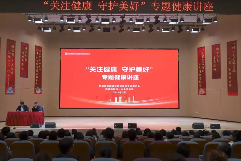 在“三八”国际妇女节来临之际,为切实关心关爱辖区企业单位职工身心健康,3月5日下午,能源金贸区工会联合铁一中金湾中学举办“关注健康 守护美好”专题健康讲座。邀请知名三甲医院专家就甲状腺等常见病的预防与治疗做专题分享,辖区企业单位员工代表、铁一中金湾中学及金湾小学教师代表、园办干部员工代表共约300人参加活动。