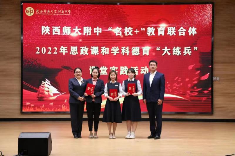 西咸新区沣西第四学校是陕西师范大学附属中学“名校+”共同体成员校之一。学校安排教师坚持参加师大附中主办的每一次主题教研和赛教活动,三位思政教师都曾在师大附中举办的大型“思政练兵”活动中取得优异成绩。同时,学校与师大附中聚力集体备课,齐头并进打造高效课堂,共同探讨课堂改革及中考重难点,为提升中考质量点亮指路的灯塔。