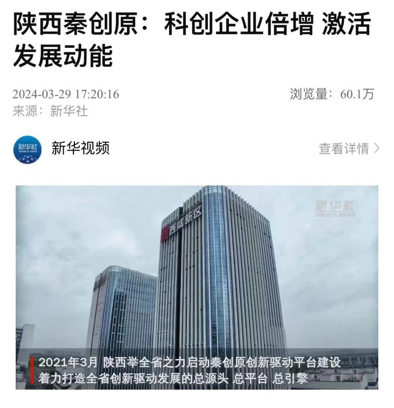 3月29日,新华社刊发电稿《陕西秦创原:科创企业成倍增长创新成势激活动能》,聚焦秦创原创新驱动平台建设成效,其中报道西咸新区持续深化“三项改革”,构建全领域、全链条、全要素科技创新体系推动新质生产力培育壮大,全文如下。