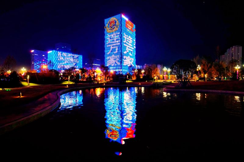 华灯初上夜未央,“秦创原”企业总部大厦建筑群灯光璀璨,一幅幅跳跃的光影,在静谧的夜色中勾画着西咸新区发展的蓬勃生机。