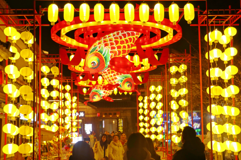 春节假期,诗经里将诗经故事、古典神话、孔阳望舒IP等传统文化元素融入花灯之中,营造出灵蛇献瑞、纤云弄巧、鱼跃于渊、灼灼其华、诗经之海等美妙意境。园区巧妙地将诗经文化、传统年味、国潮文化、神话传说完美融合,成为游客赏灯的绝佳之地,处处流光溢彩,如梦如幻。