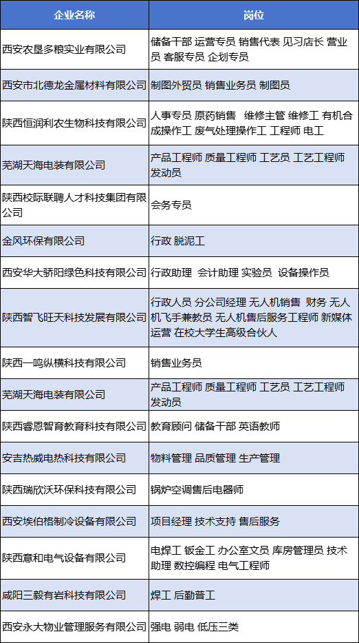 “西咸新区金秋招聘季”综合类专场招聘会岗位及企业名单