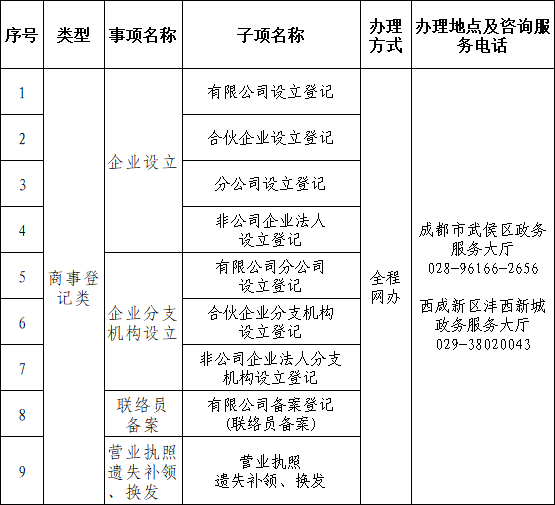 成都市武侯区与西咸新区沣西新城政务服务“跨区通办”事项清单(9项)