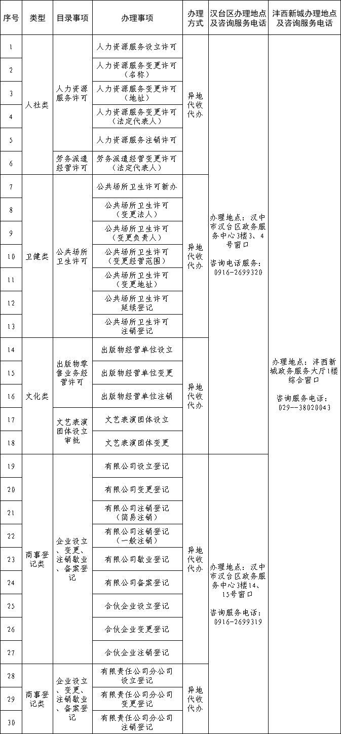 汉中市汉台区与西咸新区沣西新城政务服务“跨区通办”事项清单(30项)