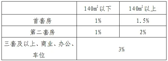 购买90-140㎡家庭唯一住房和第二套住房,12月1日后申报契税可减按1%缴纳。