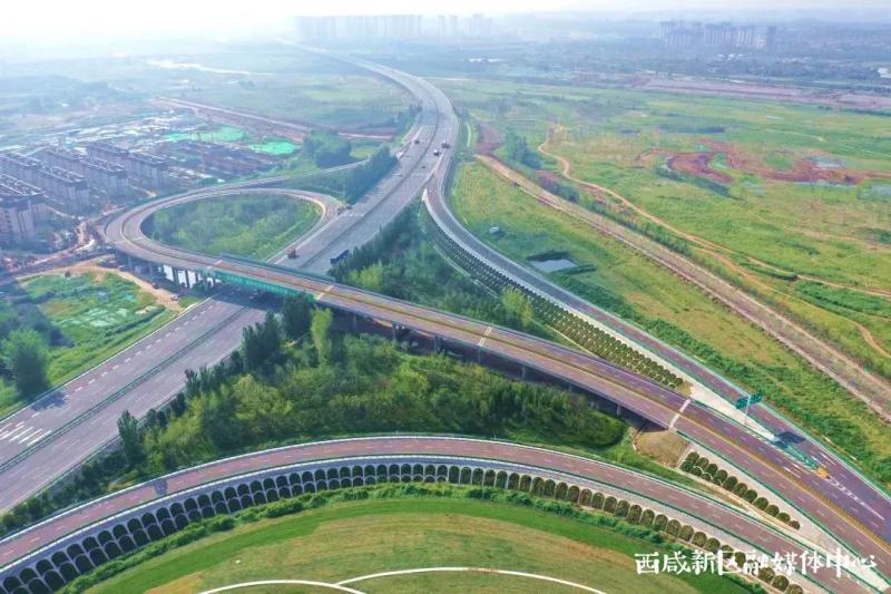 今年8月,西咸新区泾河新城包茂高速复线泾河新城立交通车。泾河新城立交地处泾河新城泾河湾院士科创区,是泾河新城与G65高速主线连通的重要枢纽。