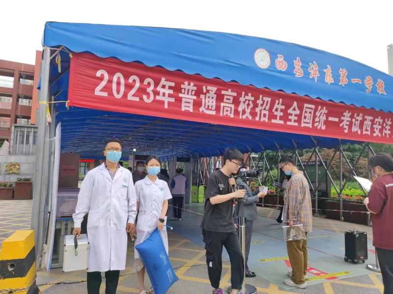 (沣东一校考点门口,医护人员在整装待命)