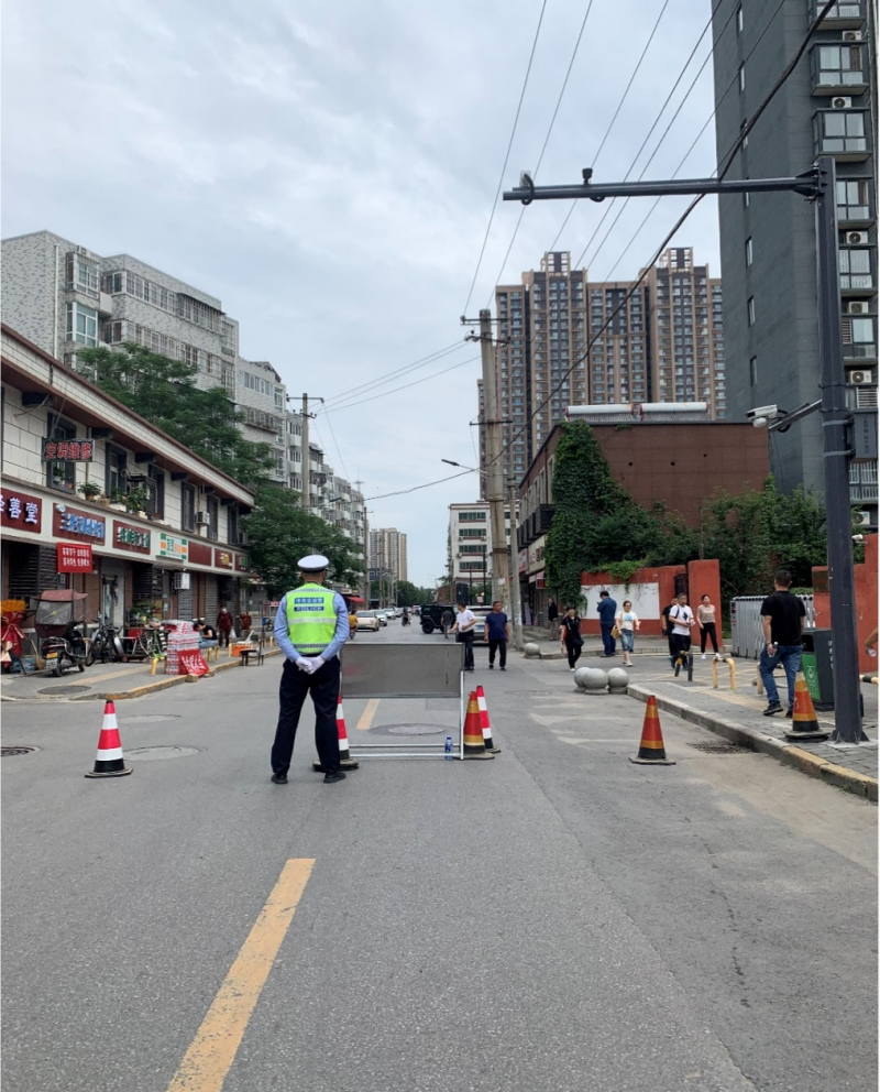 (沣东二中考点附近,交警人员对周边道路进行管控,确保考点周边交通秩序良好)