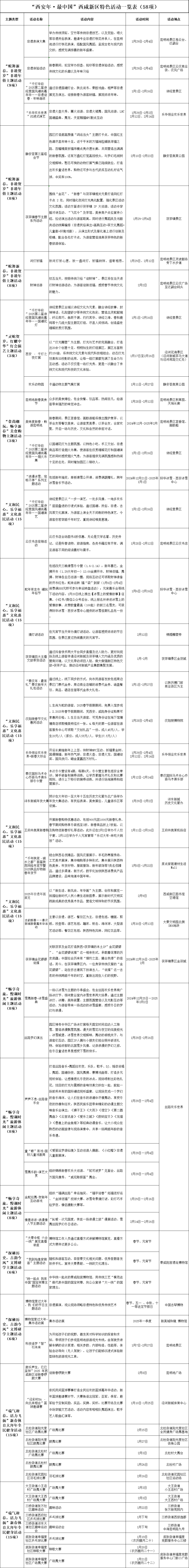 2025年西咸新区新春文化旅游系列活动即日起至2月27日,横跨除夕、元宵等节日,包括7大主题58项特色活动,让市民游客在热闹喜悦氛围中