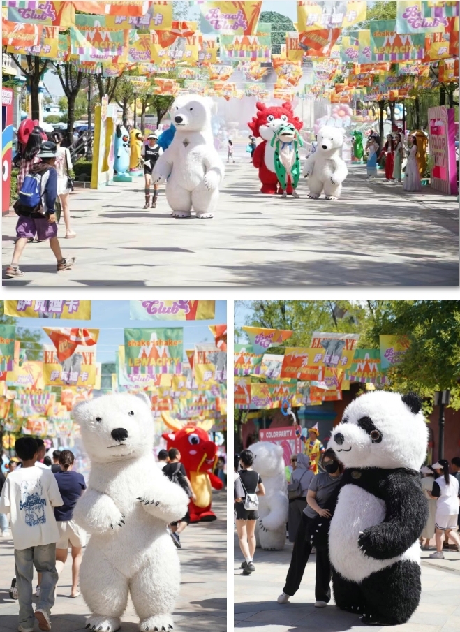 XXXXL萌物大巡游:熊本熊巨型人偶方阵空降园区,记得站在巡游路线起点,抢占和萌物击掌的C位,伸手就能摸到云朵般的手掌。