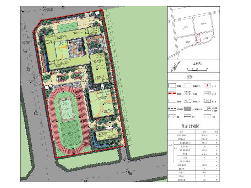 项目位于秦汉新城周鼎二路以东、天健二路以南、天健一路以北区域。本项目规划净用地面积18405.38㎡,总建筑面积28338.45㎡,主要建设教学综合楼、食堂及风雨操场、宿舍楼等。详见总平面示意图。