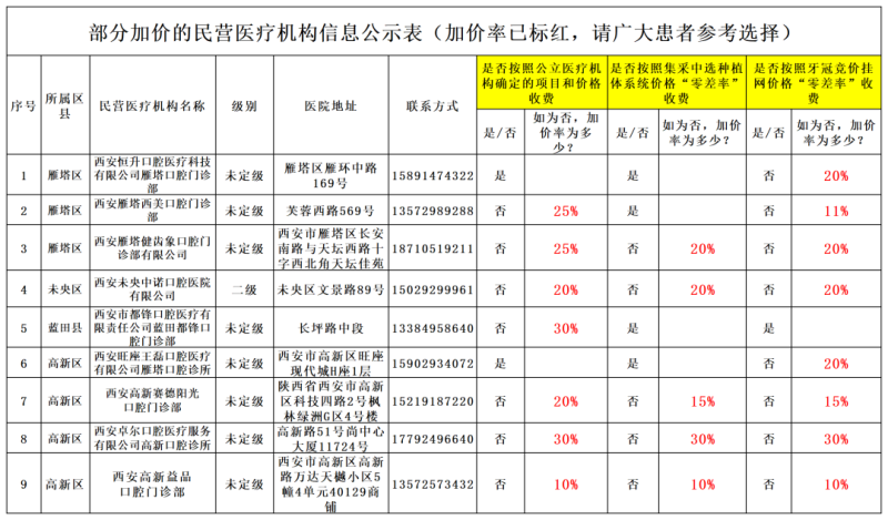 参与种植体集中带量采购,存在部分加价的民营医疗机构信息公示表(9家)加价率已标红,请广大患者参考选择。