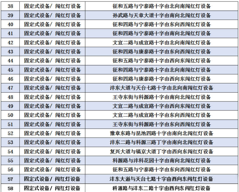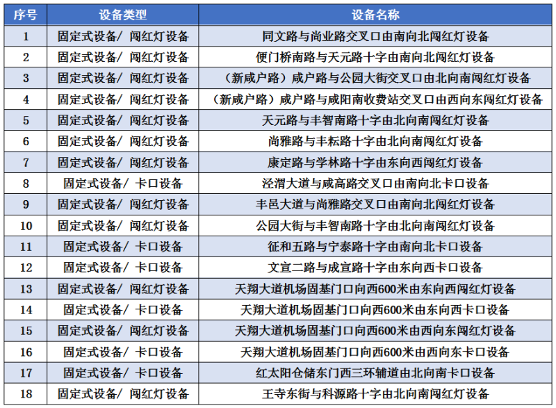 为进一步加强西咸新区重点道路交通管理,优化道路通行环境,预防和减少道路交通事故发生,保障广大人民群众的生命财产安全,根据《中华人民共和国道路交通安全法》、《中华人民共和国道路交通安全法实施条例》等法律法规的有关规定,结合西咸辖区道路交通实际,现决定自2024年5月24日零时起正式启用以下58处违法抓拍取证设备,现将新增道路违法采集点位公示如下: