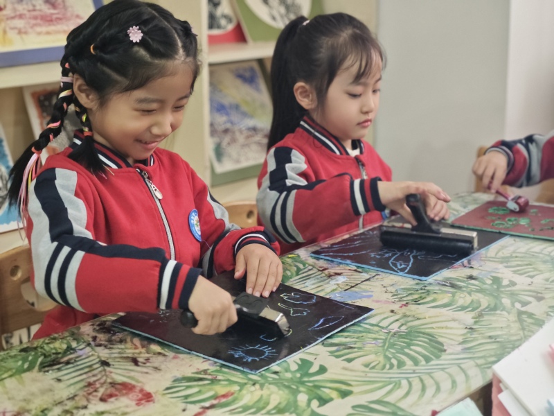 该园以多种形式开展版画创作活动,介绍版画知识,投放工具材料,邀请家长参与亲子活动。幼儿在活动中学会版画技能,提高艺术素养和创造力,营造良好的中华优秀传统文化学习氛围。