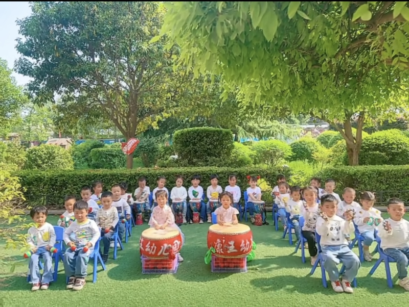 大鼓是我国传统的打击乐器,在有音乐园本特色的西咸新区沣西大王镇康王村幼儿园里,大鼓就在孩子们身边。鼓声震天动地,节奏抑扬顿挫,旋律荡人心怀,深受孩子们的喜爱。传承鼓文化,收获鼓精神,以鼓化人、以鼓育人!让中华优秀传统文化落地生根从娃娃抓起。