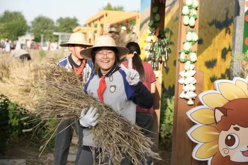 西咸新区泾河第二学校始终致力于校园固体废物源头减量和资源化利用,成功构建了以食堂——精灵屋——幸福农场为核心的生态循环系统。学校对厨余垃圾进行科学分类处理,将可食用部分用于喂养家禽,其余部分交由专业清运公司转化为有机肥料和沼气,实现了废弃物的高效循环利用。家禽粪便又作为天然肥料滋养幸福农场的农作物,减少了化学肥料的使用,有效保护了生态环境。同时,学校依托幸福农场开展了“开镰节”“我为蔬菜代言”“最美责任田”“蔬菜义卖”等一系列富有特色的德育和智育活动,让学生在亲近自然、参与劳动的过程中,深刻体会环保的重要性,增强了社会责任感和使命感。