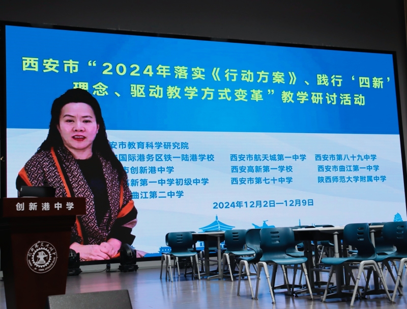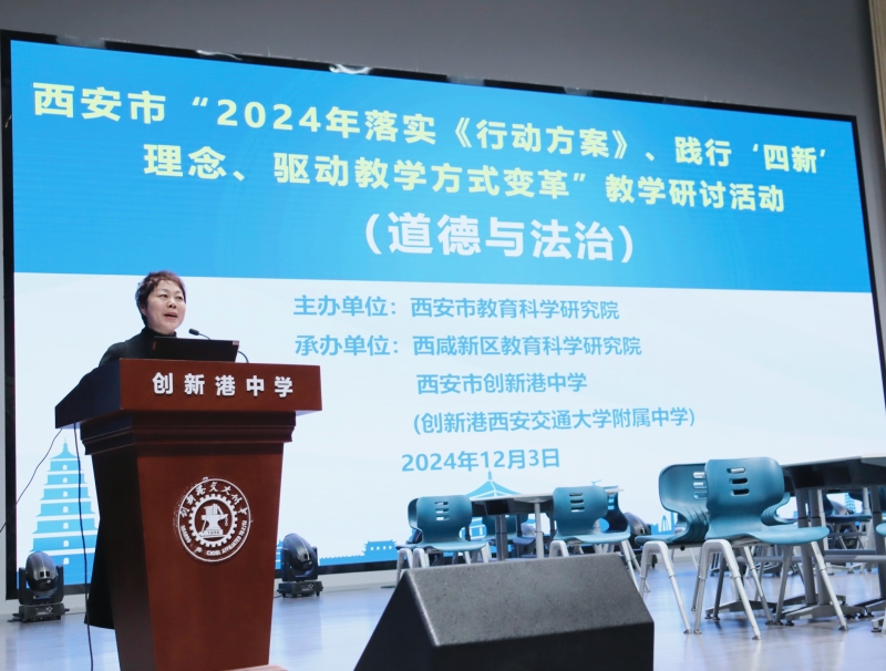 2024年12月3日,由西安市教科院主办、西咸新区教科院承办的“落实《行动方案》、践行‘四新’理念、驱动教学方式变革”研讨活动(道德与法治学科)在西安市创新港中学举行。全市各区县400余名学科教师参加活动。