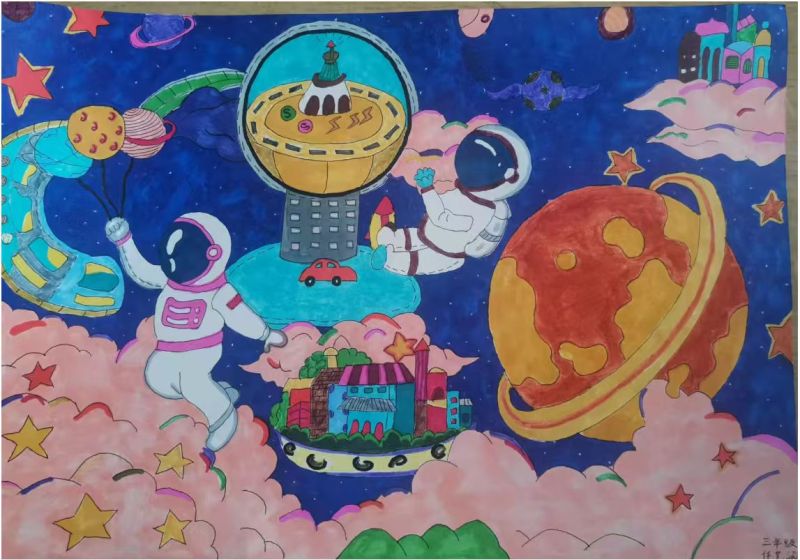 沣西大王镇康王村幼儿园开展了“科技逐梦,巧手绘梦”科技节绘画作品展,从小培养孩子的科学精神、科学素养以及爱国情感。