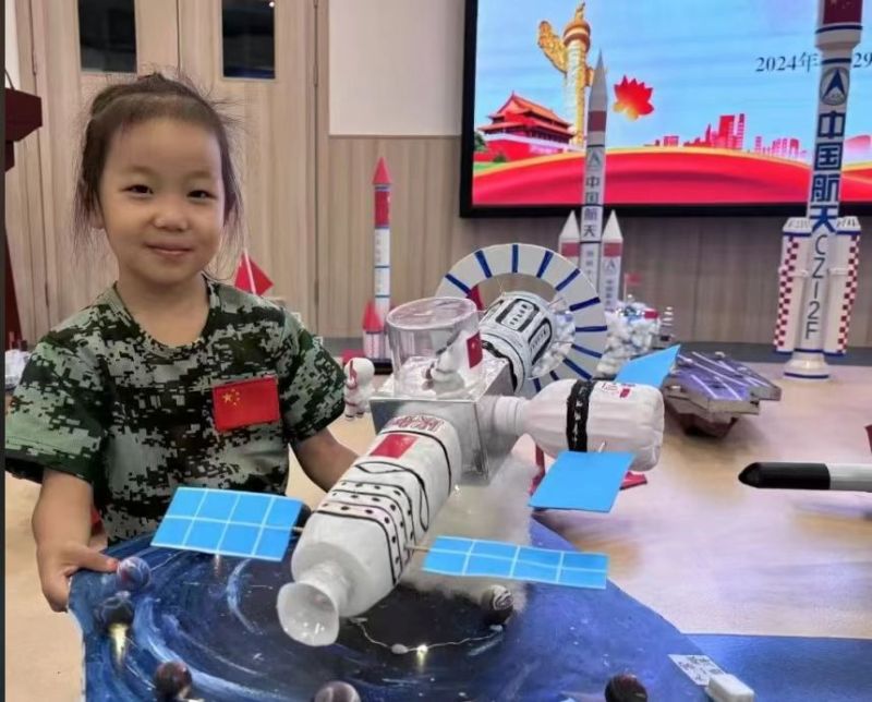 在每位小朋友的心中,都有一份奇思妙想,一个小小的科技梦。带着对遥远太空的好奇,秦汉周陵第一幼儿园的小朋友和大朋友们一起用手工制作来表达出心中伟大的科技航天梦,致敬摘星星的人!