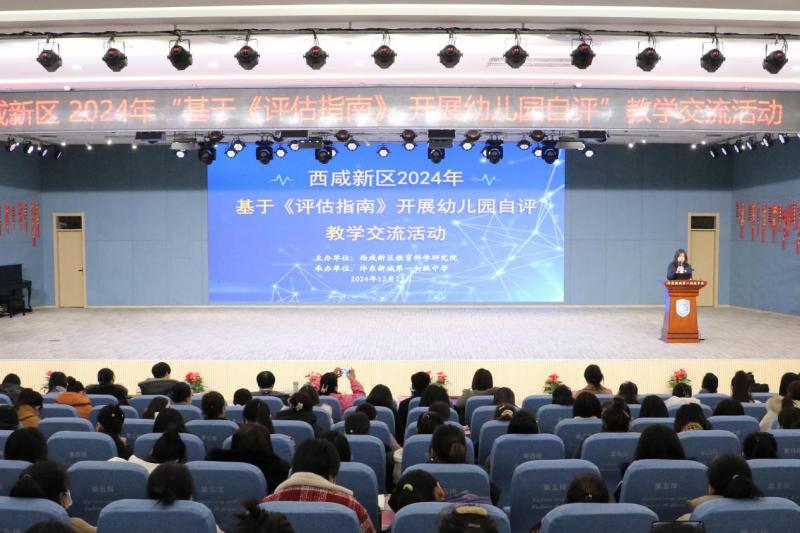 12月25日,西咸新区教育科学研究院组织开展的2024年“基于《评估指南》 开展幼儿园自评”教研交流活动在西咸新区沣东第一初级中学顺利举行。西咸新区教育科学研究院副院长郭永波、西安市莲湖区远东保育院教研主任张美娟、辖区学前兼职教研员和各幼儿园园长、副园长、保教主任等240余人参与活动。