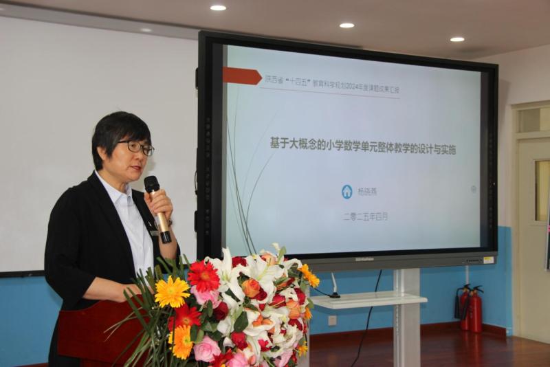 阿房路三校校长杨晓燕结合该校省级课题,围绕“背景与现状、核心概念、单元整体教学设计与实施、成效与成果”,分享基于大概念的小学数学单元整体教学实践经验。