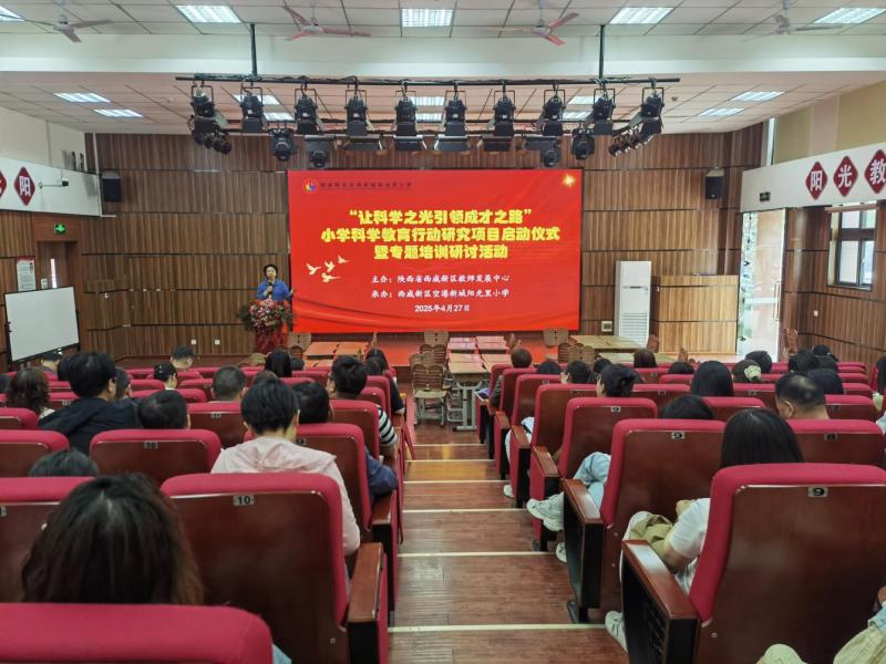 4月27日,西咸新区“让科学之光引领成长之路”小学科学教育研究项目启动仪式暨专题培训研讨活动在空港阳光里小学顺利开启,为区域小学科学教育注入了全新活力与创新理念。此次活动吸引了西咸新区各小学130余名科学骨干教师,共同为小学科学教育的发展出谋划策。