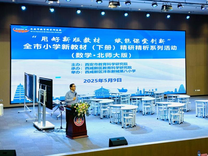 5月9日,西安市小学数学新教材(下册)精研精析活动以“异地同步教研”形式在西咸新区开展。本次活动由西安市教科院主办,西咸新区教科院承办,主会场沣东第八小学与莲湖第二学校分会场隔空协作,吸引全市小学数学教师300余人参加。