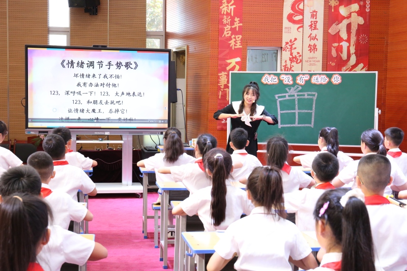 课程展示中,张燕子、文绮思、周聪、王芬四位教师带来《做情绪的小主人》《我把“没有”送给你》《Healthy food》等A、B课例,通过游戏互动、情景模拟、绘本阅读等形式,引导学生认识与管理情绪,展现学科融合心育的创新实践。