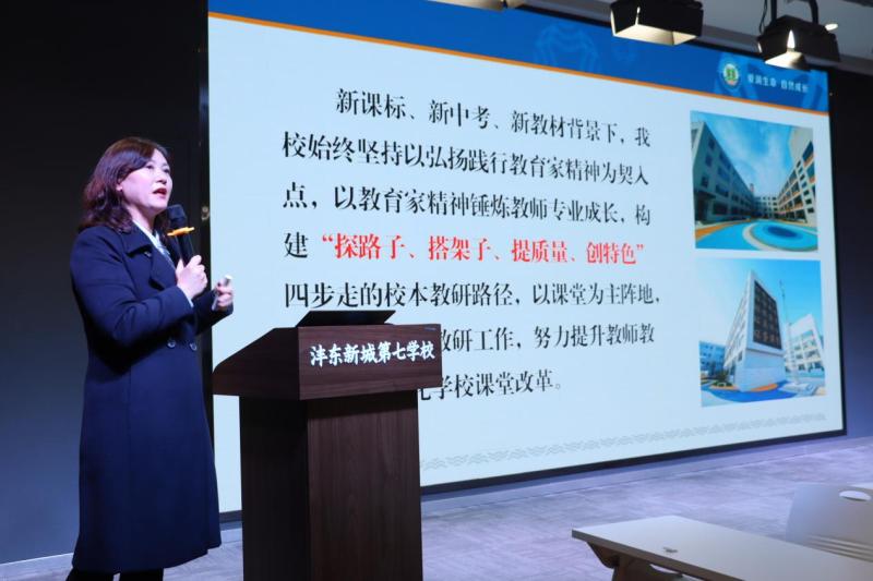 泾河第二学校执行校长刘建玲分享项目式学习特色教研的实践经验,沣东第七学校副校长吕雯介绍“探路子、搭架子、提质量、创特色”四步走的校本教研特色实践路径。