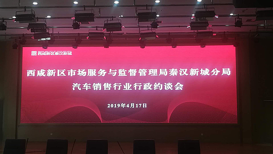 2019年4月17日,秦汉新城市场服务与监督管理分局约谈辖区40余户汽车销售企业进行行政约谈。