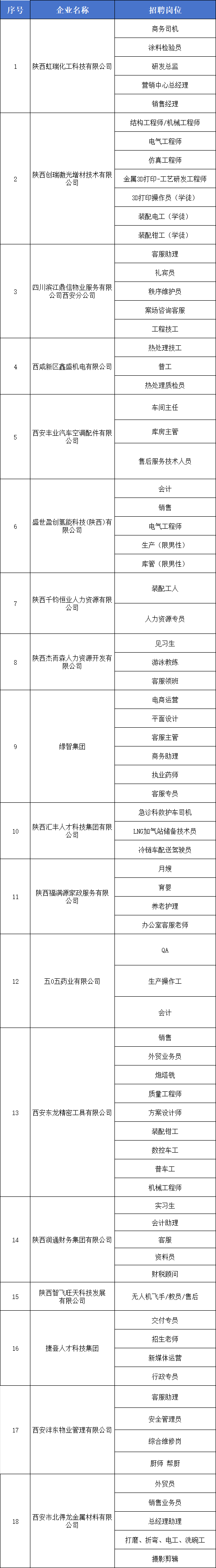 招聘企业及岗位名单