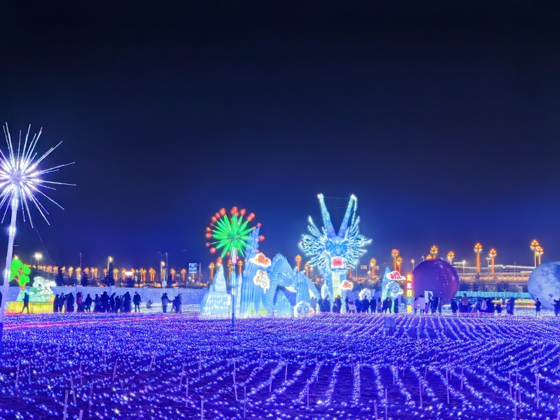 走进泾河花海景区,超级灯会已经拉开序幕。华灯初上,灯光璀璨,五彩的灯光照亮景区各处,山海经、篝火晚会各类节目让人应接不暇,遨游在灯光中,沉浸式体验花海夜游的奇妙体验。更有各种小吃、亲子乐游,小火车在灯海中缓缓开来,最适合全家出动开心过大年。
