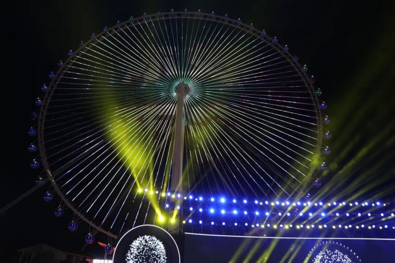 桑巴热舞火辣,彩虹礼花绚烂,6月17日晚上8点,伴随着凉爽的夜风和激动的欢呼声,西安市2022年消夏旅游季暨看见多彩西咸西安欢乐海岸·OCT1314摩天轮在西咸新区沣东新城盛大启动。