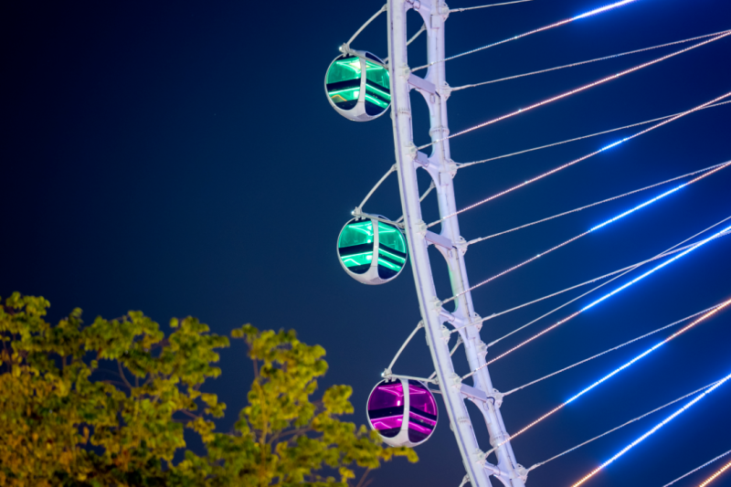 西安欢乐海岸·OCT1314摩天轮以“国内顶级 国际一流”为标准,131.4米的高度搭配52个科幻球体太空舱,寓意“一生一世我爱你”,并配备冷暖空调、蓝牙音箱、沙发座椅等设施,外观极具未来感和科幻感。