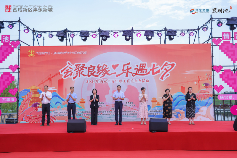 8月22日下午,“会聚良缘·乐遇七夕”2023年西安市青年职工联谊交友活动在西咸新区昆明池举办,近千名单身青年在鹊桥见证下开启追寻真爱之旅,昆明池·七夕公园也荣获“西安市青年职工联谊交友基地”称号。