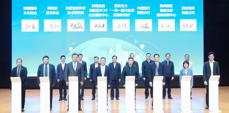 揭牌仪式结束后,西安交大“一带一路与全球发展研究院”、陕西智库科学技术研究院、中国银行陕西分行、陕西省报关协会、西咸新区融商法律服务创新中心、韩国国际文化商会、西安海邦物流公司作为首批入驻企业(机构)与陕西自贸试验区RCEP企业服务中心正式签约。贸促会、银行、海关等机构就国际商事认证及贸易规则、支持自贸试验区金融创新试点政策、支持自贸试验区贸易便利化政策等进行了解读和推介。