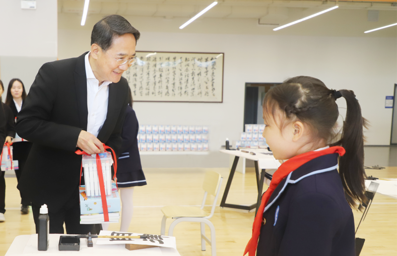 沣西新城创新港小学,是一所公办六年制小学,校园设施完善、环境优美、教育理念先进,各具特色的功能部室满足孩子多样化发展需求。杨仁华走进“三航”展厅、线上教育中心、书法教室,详细了解学校办学理念、师资力量、环境条件和生源状况,并向孩子们送去节日礼物,祝愿他们健康成长、天天向上。