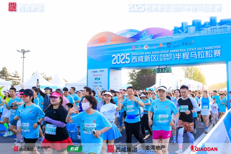4月20日上午,2025西咸新区(西咸集团金湾地产)半程马拉松赛在昆明池畔鸣枪开跑,万名跑步爱好者齐聚于此,共同演绎一场速度与激情的体育盛宴。