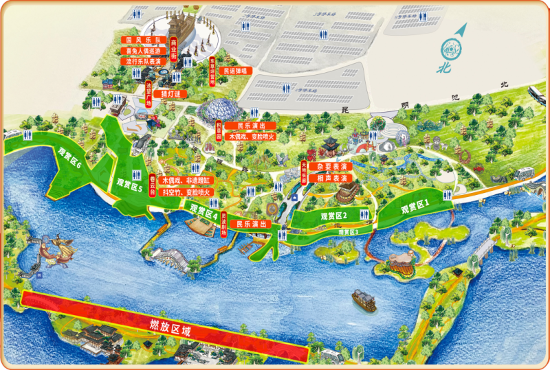 为避免拥堵而错过精彩瞬间这些交通信息请您关注。希望大家合理规划出行路线提前错峰出行。烟花表演期间,社会车辆优先停放于景区东侧3、4、5号停车场,然后步行进入景区观看表演。如遇车流量较大,停车场满载情况,将开放昆池大道东二路以东,西一路以西区域道路路侧停车。