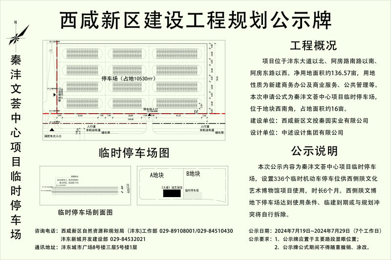 该临时停车场位于沣东大道以北,阿房东路以西,阿房南路以南。经建设单位申请,我中心拟按程序完成该项目设计方案审查,项目概况附后。