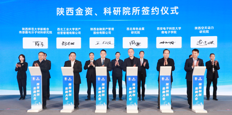 在签约环节,陕西金资分别与陕西空天动力研究院、西安电子科技大学微电子学院、西北有色金属研究院、西北工业大学资产经营管理有限公司、陕西师范大学新概念传感器与分子材料研究院5家科研院所签署合作协议。